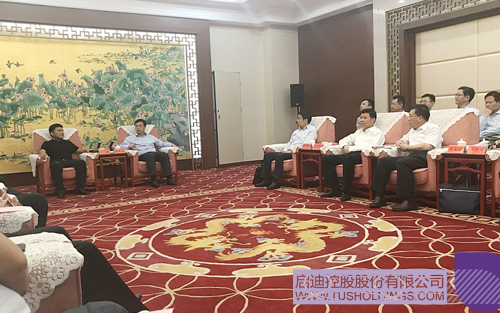 盐城市委副书记、市长曹路宝(右)与启迪控股高级副总裁、启迪物联网董事长王彬博士会谈