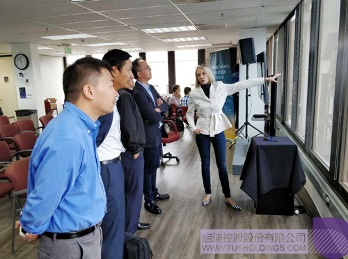 马志刚(右一)一行视察指导启迪之星安娜堡孵化基地